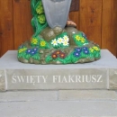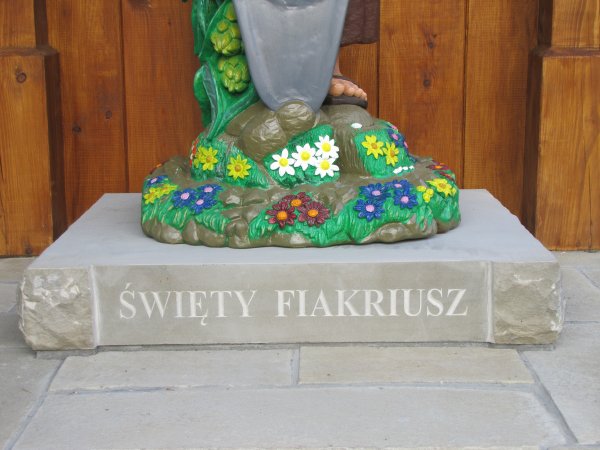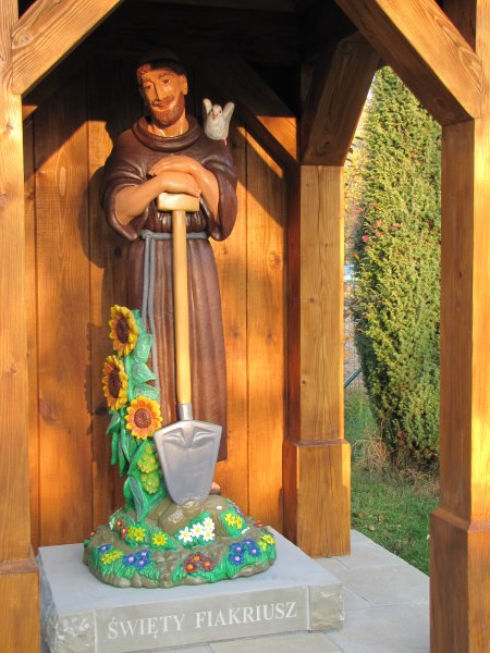 Figura świętego Fiakriusza tak jak i świętego Ambrożego w pasiece jest dziełem Państwa Stanisławy i Józefa Steligów z Chyszówek. Kapliczkę brogową dla świętego wykonał Kazimierz Stach – nieoceniony mistrz ciesielski, stolarz , kamieniarz, murarz jednym słowem ten, który potrafi wszystko.