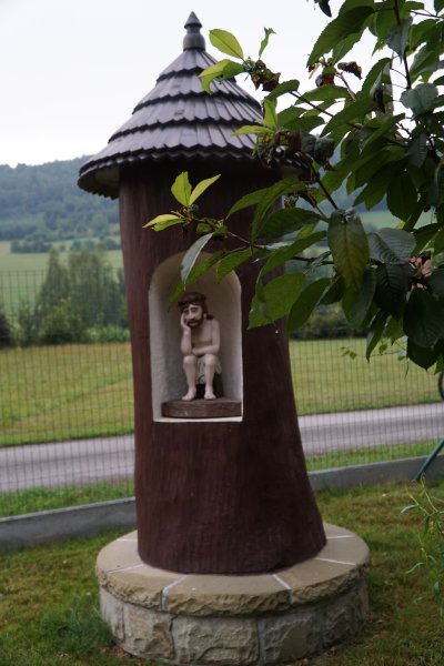 Wśród nowych eksponatów skansenu związanych z lachowskim folklorem i życiem duchowym nie sposób nie wyróżnić rzeźby dłuta regionalnego artysty rzeźbiarza Juliana Ryndaka. Drewniana rzeźba umieszczona została w kapliczce wykonanej w potężnym lipowym pniu nakrytym gontowym daszkiem na kamiennym cokole.