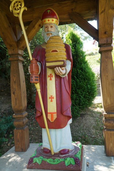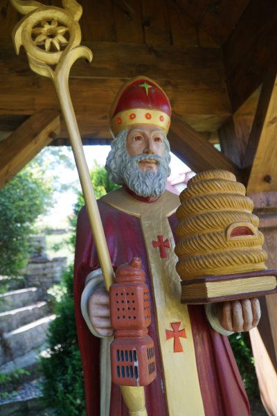 Pora na prezentację kolejnego obiektu małej architektury skansenu. W otoczeniu barci, wiekowych uli oraz słomianych kószek tworzących skansenową pasiekę znalazł swoje miejsce Ambroży, którego bliskość z pszczołami związana jest od niemowlęctwa tego znanego, świętego biskupa Mediolanu.